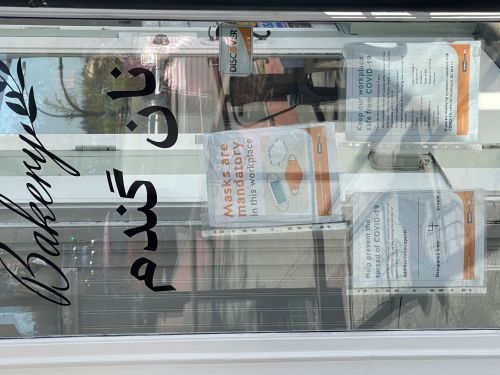 Figure 2: Bilingual (English and Persian) bakery sign with monolingual (English) Covid-19 signs